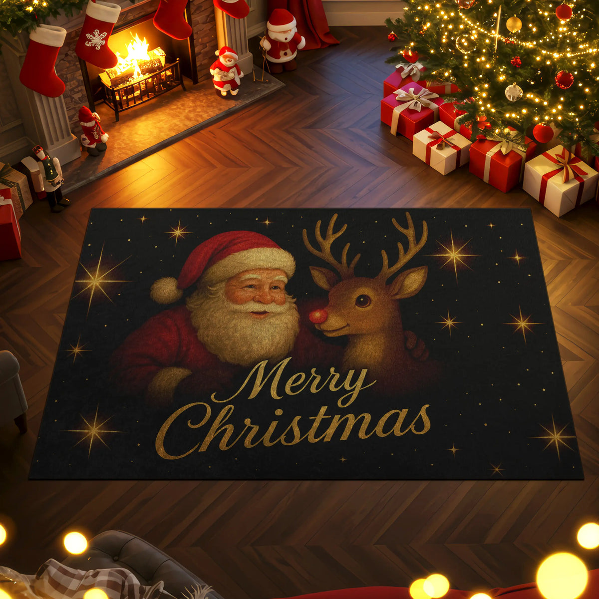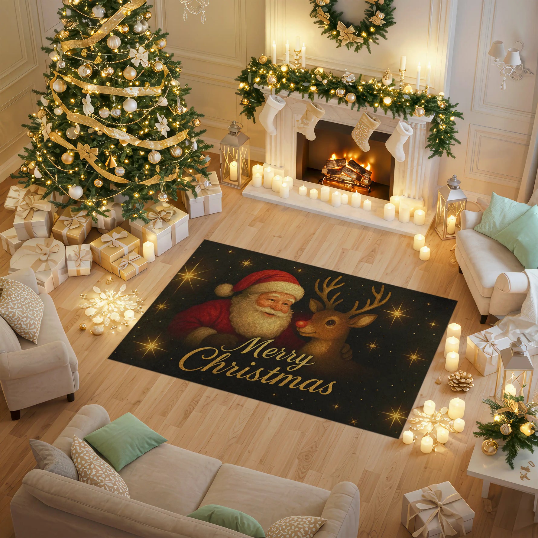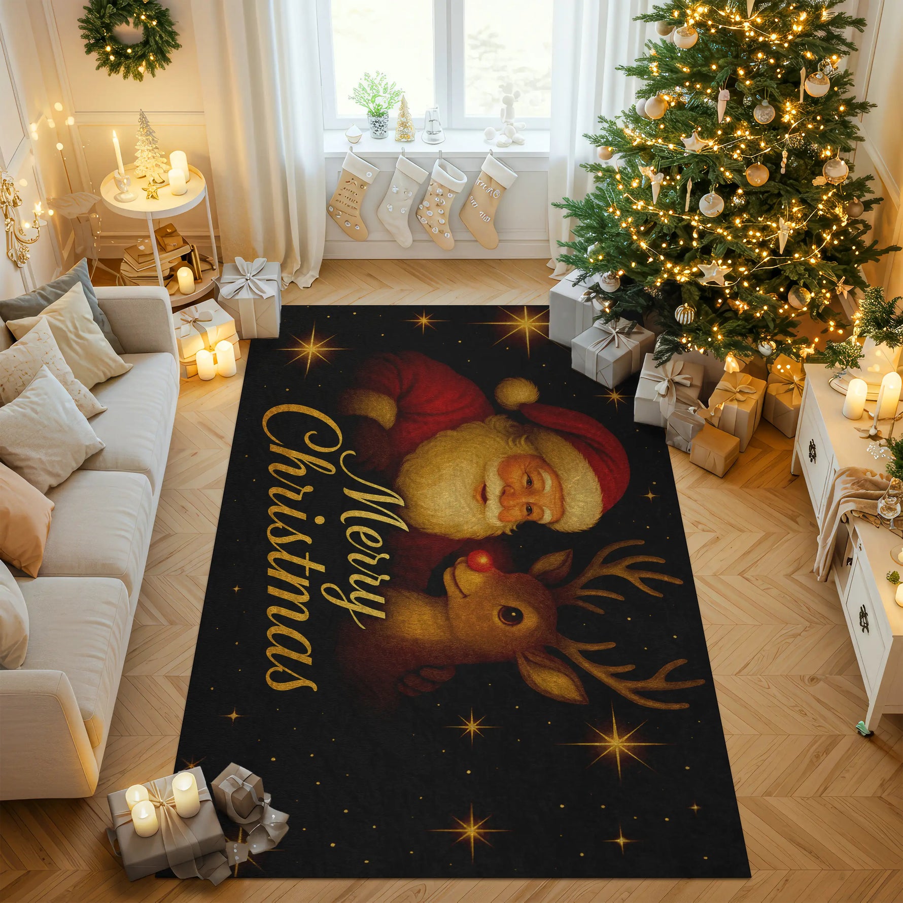 Santa & Reindeer Christmas Rug – Festive Holiday Carpet