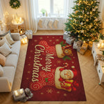Santa & Teddy Christmas Rug – Red Holiday Carpet with Stockings