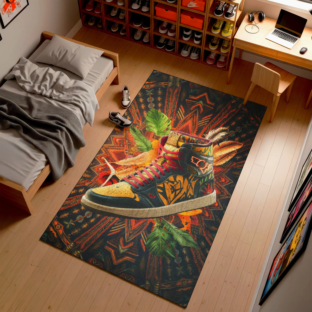 • 👟 Colorful sneaker graphic rug—streetwear meets home decor.